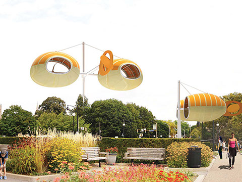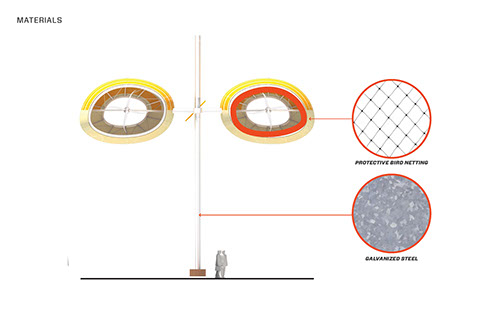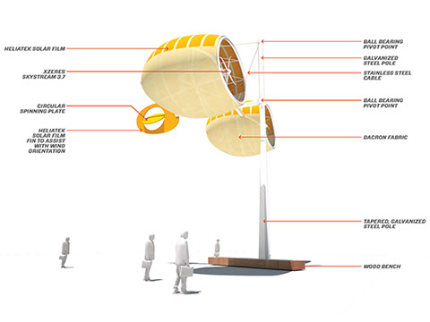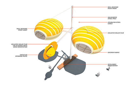 Renewable energy, recreation, and entertainment come together in the WindNest artwork.
