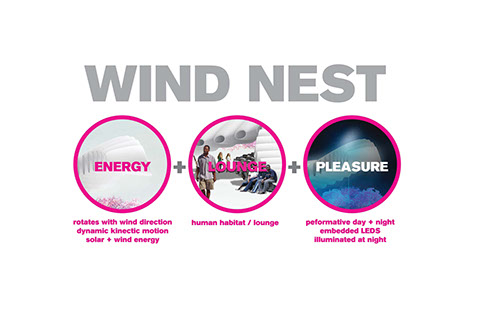 Renewable energy, recreation, and entertainment come together in the WindNest artwork.